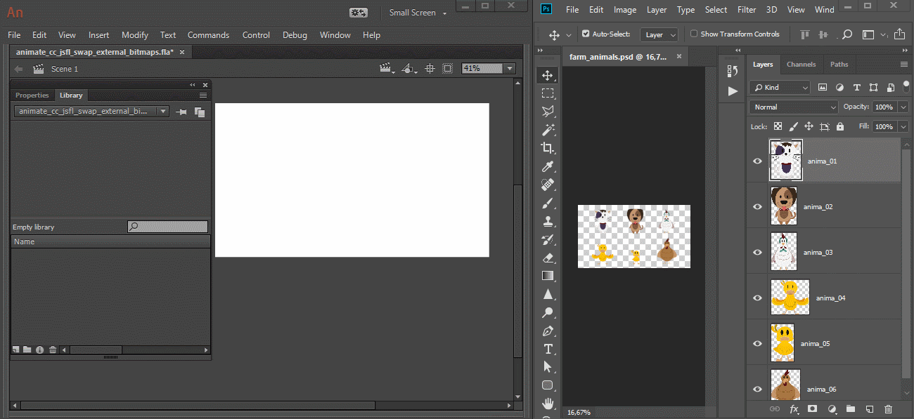 - Photoshop appends numerical indexes to layers with the same names using dashes while Animate CC uses underscores. So if one outputs to "image-1", "image-2", the other outputs "image_1", "image_2". So, for these cases, the images won't be replaced.