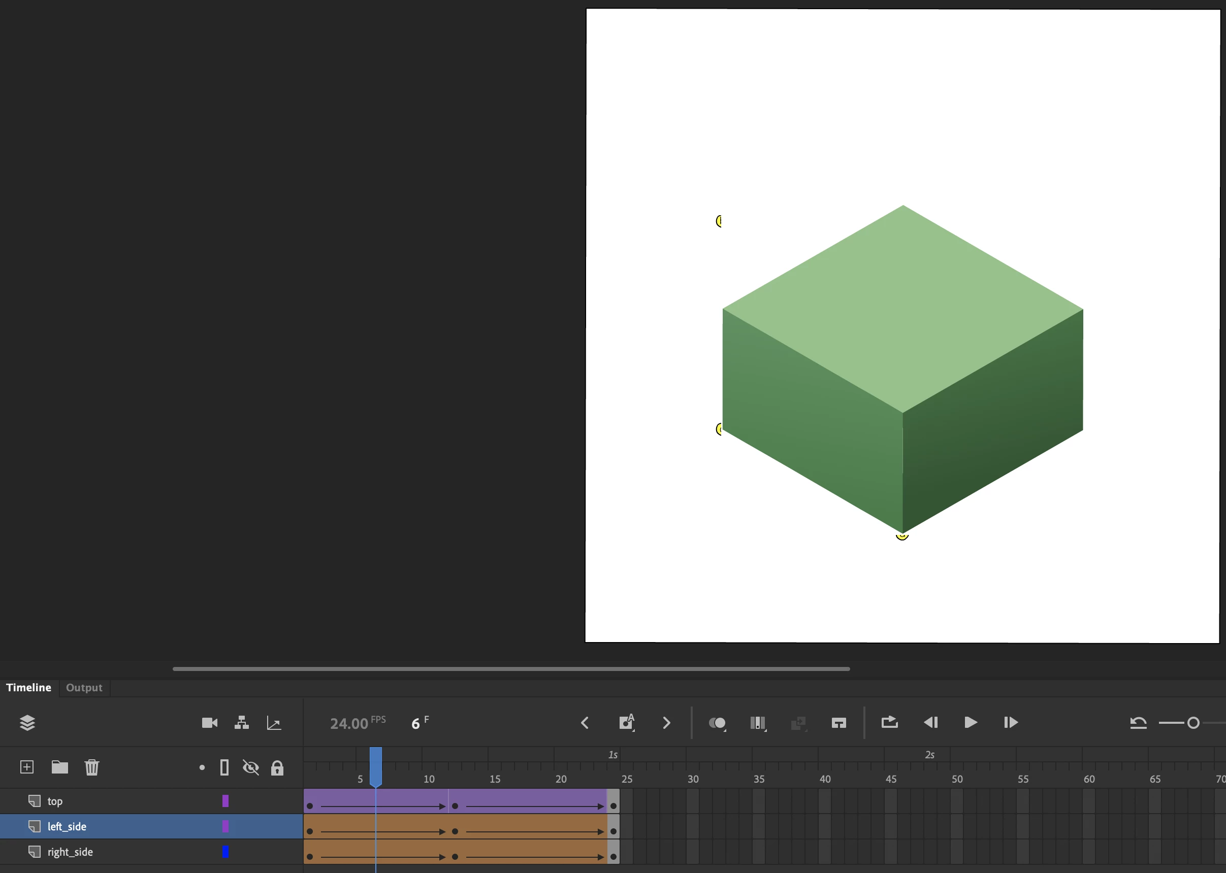 I'm new to Adobe Animate and attempting to create a simple test animation of an isometric cube-button squishing in place.