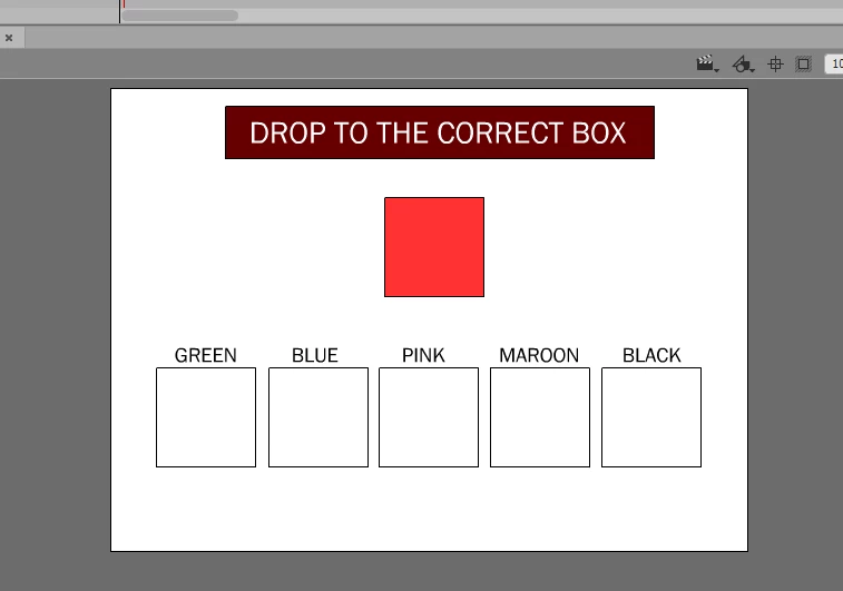 I created a drag and drop game in Animate CC with HTML5 canvas. How to make an object (red box) snaps to targets (white boxes)? It's not just snaps on correct target but also incorrect target, then shows response (correct or incorrect).