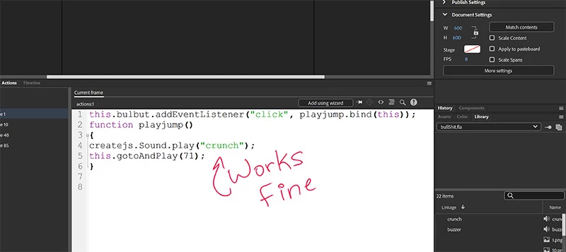 Hi guys, have a simple crunch sound. When I put it on the timeline and play the movie, Nothing. So I made a button and coded the sound to play and it works fine? Same mp3 file.