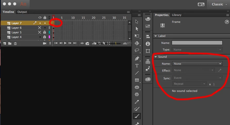 So, when you add sound to a project is Adobe Animate CC, it’s supposed to show a sound wave on your timeline, like this: