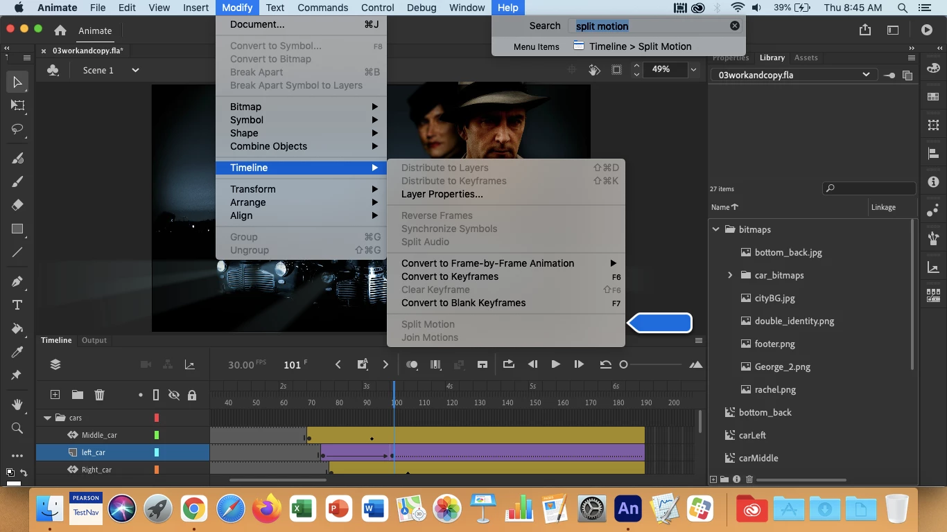 when i try to split a motion tween, the option is greyed out. i looked through the help center and it told me the problem was i had too many frames selected. i tried again with only one frame selected and it still did not work. it also said something about command+click, but that didnt work either. i use animate 2021 on mac if that helps