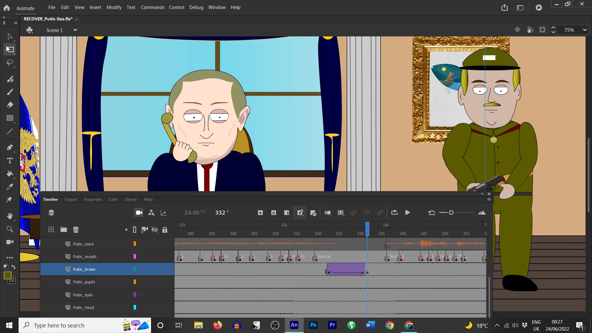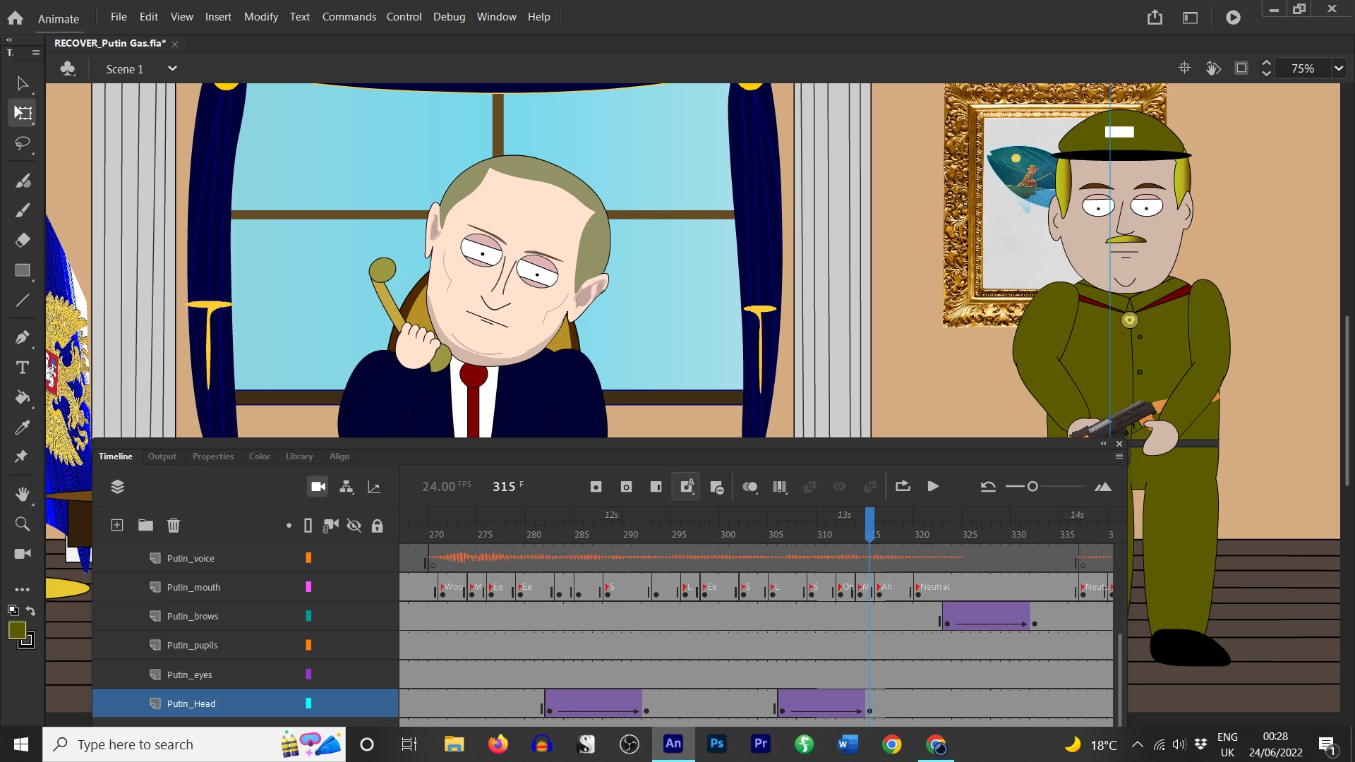 This didn't happen with my last project. I have saved all my layers as symbols and connected them together. However, whenever I try to move a symbol (like the head or eyebrow) the tween distorts it like crazy and then skips back to normal at the end of the tween. I don't understand what's happening? Please help. Is this a glitch in Animate or my file?
