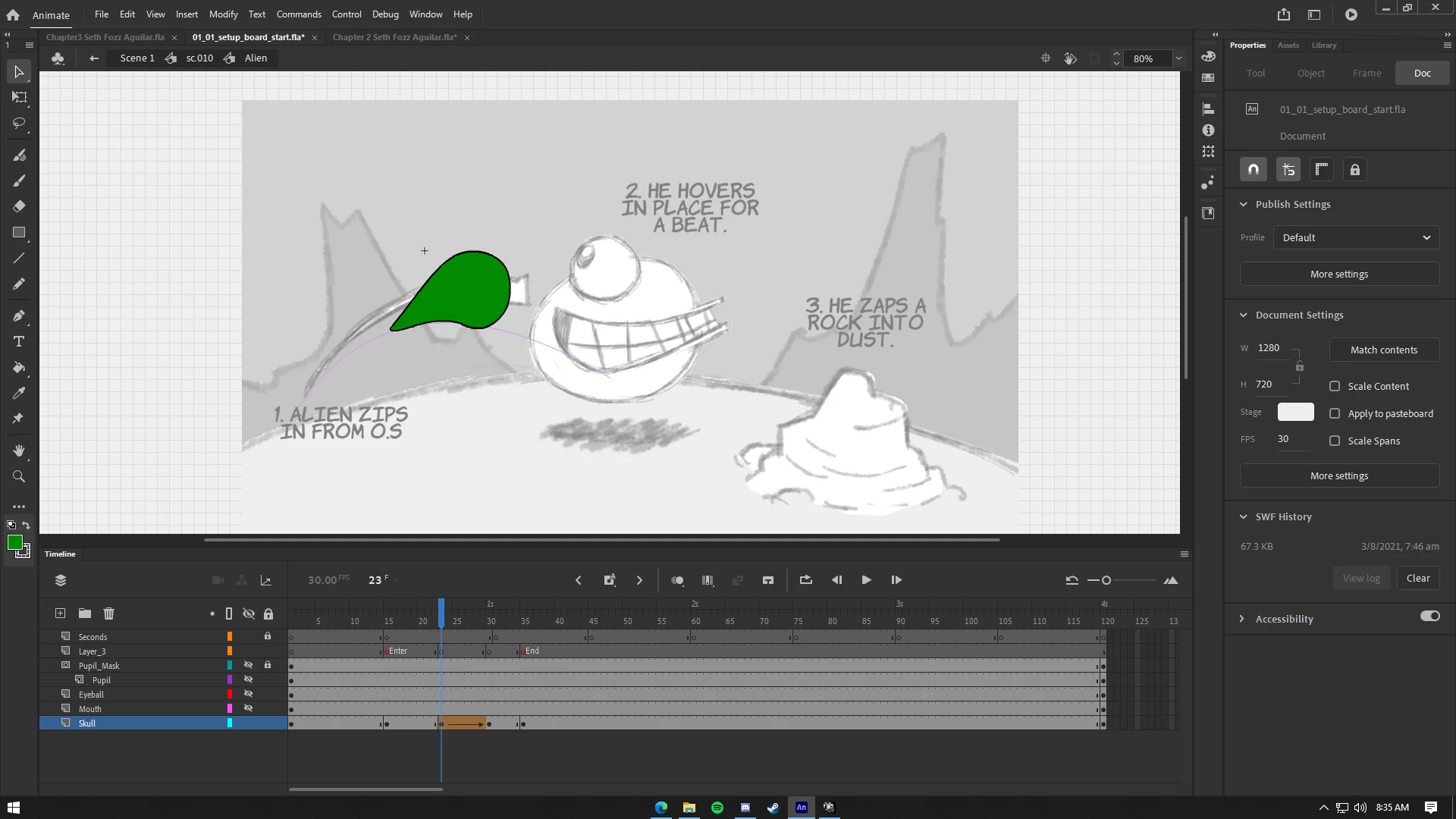 My main point is my timeline, Im working on a nested symbol and when I put a keyframe on frame 23 to 30 and play on the main scene it just animate after the whole scene, like litteraly after the transition. Here are some pictures: