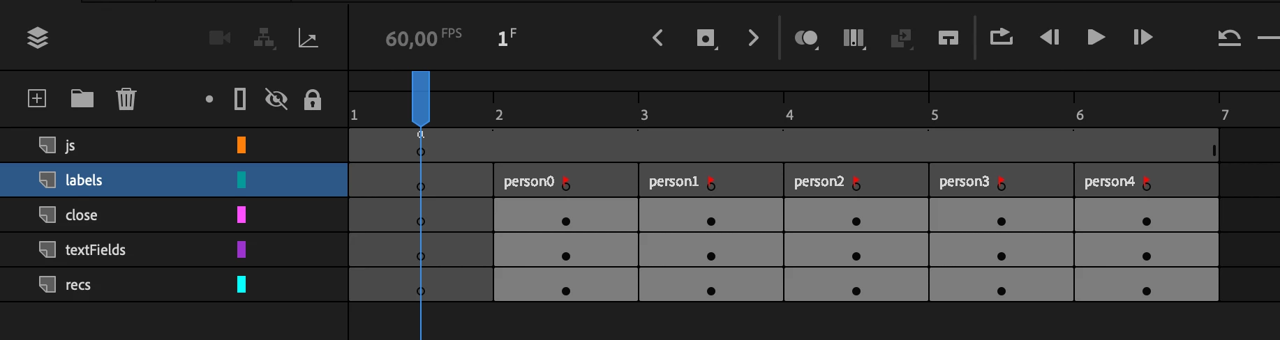 Each popup has a gradient change with stop actions for 0% and 100% for the timeline: