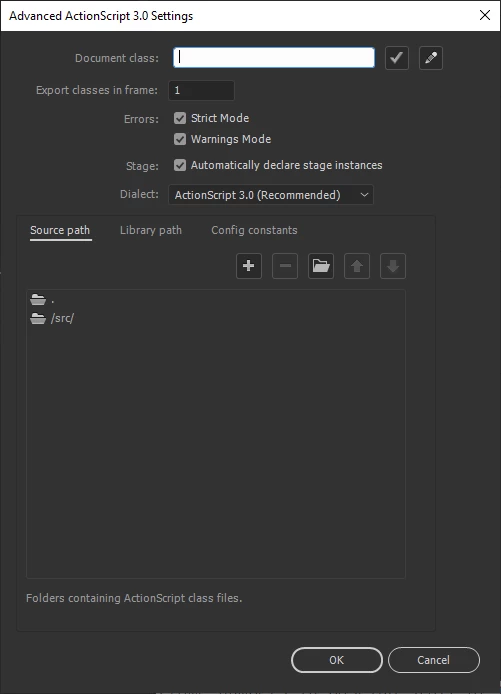 Am I going wrong in my advanced actionscript settings, setting the source path wrong.
