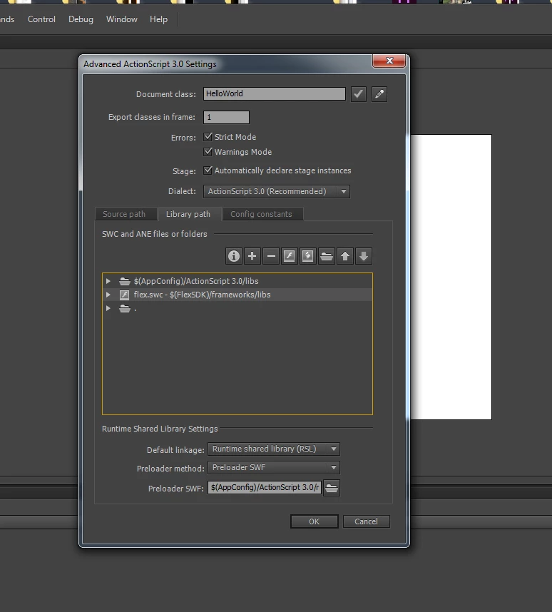 Warning: Library path "$(FlexSDK)/frameworks/libs/flex.swc" does not resolve to a valid file.