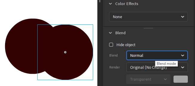 I am using animate 21 . When I overlap two objects of same colour . the common par becomes dark. I want the colour to reamin same . Where am I missing ?