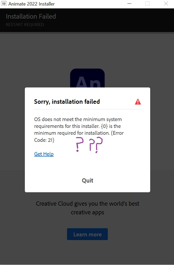 Unable to Install Adobe Animate 2022 on Windows 10
