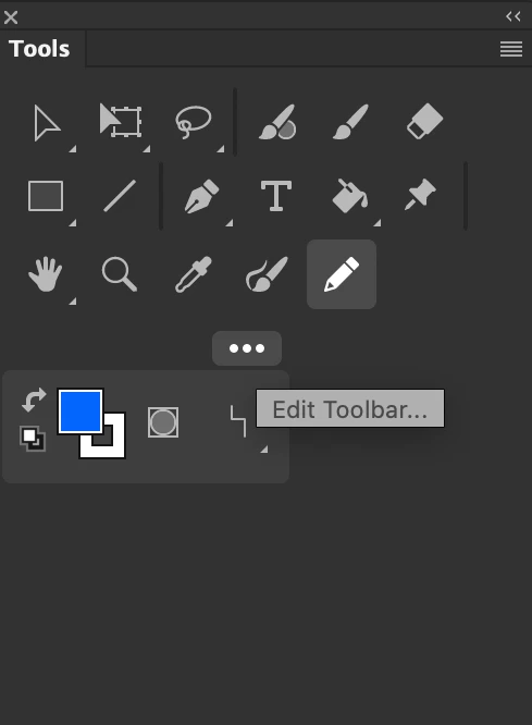 For tools that seem like they are missing, click on the three dots in order to edit the tools. Drag any that you want to add from the full set, into the tools palette area.