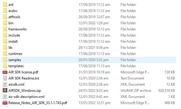 I'm reading Adobe Animate Classroom In A Book 2021. However, the text book says to select the AIR SDK folder, when I extracted the folder, multiple files, and folders were extracted, not just 1 folder holding everything.