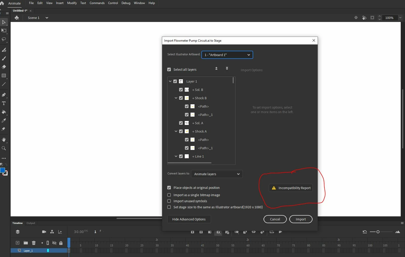Why am I getting incompatibility report and can't open an Illustrator file in Animate?