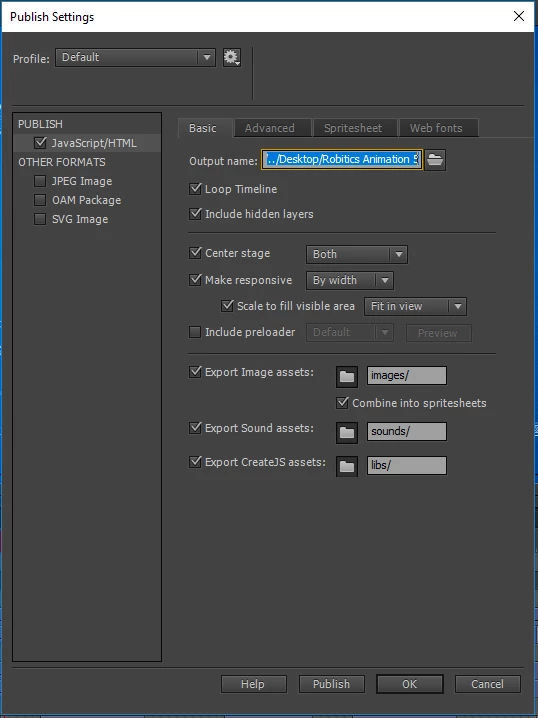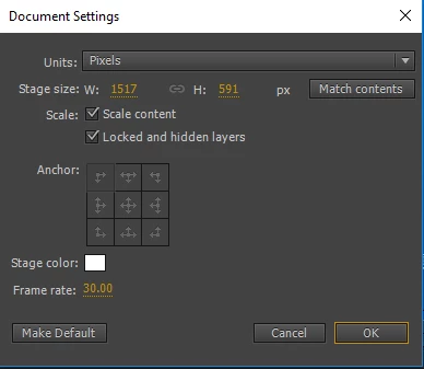 I've created an animation for a website in Animate. I publish the animation using the JS/HTML option and then open the final file in a web browser, the dimensions are wrong and it's cutting half of the animation off. See Screenshot below.