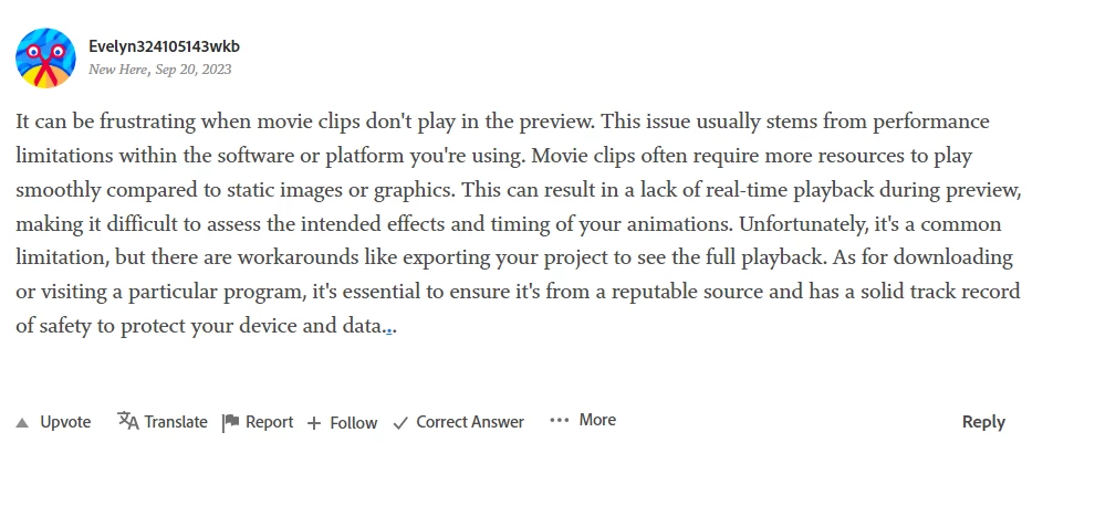 why movie clips dont play on preview?