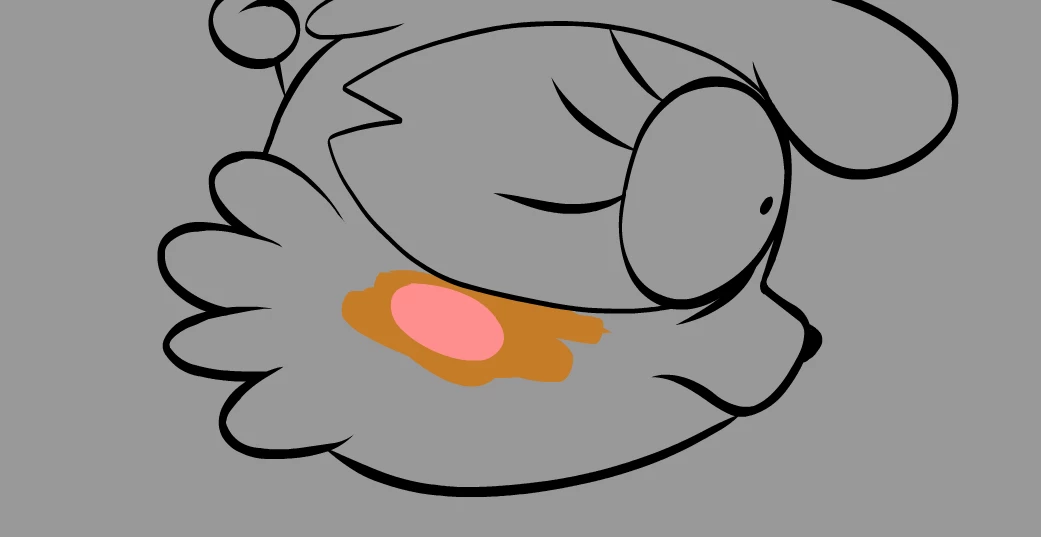 So, very confused with how color works in Adobe Animate. I am beginning the coloring for this character here and started with their cheeks first using the Paint Behind brush mode. The reason being because I believed that if something meant to be colored without lineart was filled first, I could just fill the rest of the shape behind it easily. The other reason being I was selecting the pink itself and using Snapping to move it around in some other frames, and that becomes harder to do if the entire layer is colored... anyways..