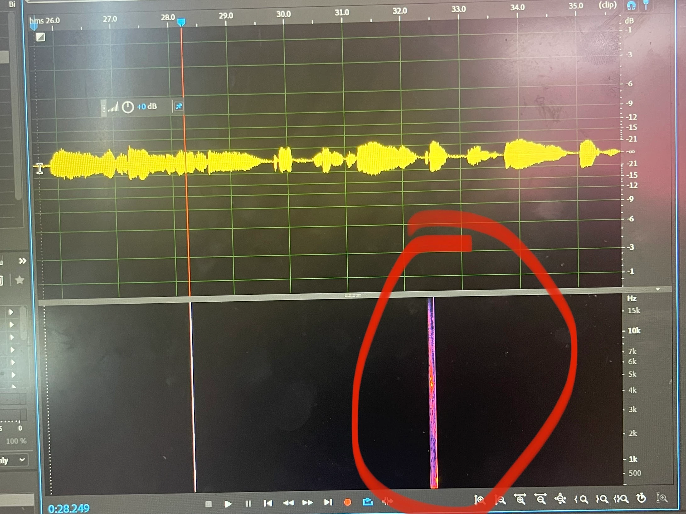 when I went to go look at them on audition, everything still looked the same until I clicked on the tracks that I could no longer here. When I viewed them in waveform, the frequency's that show underneath my clip were mostly gone, besides little .1 second clips. The pics I'm gonna attach will show what I'm talking about better than I can explain it, the circled bit is the only part I can still hear. I didn't touch anything. I rarely edit in waveform unless it's for tiny 2-3 long clips that need the volume turned down, so I'm not really sure why this happened all of the sudden. I opened up the folder that my project was saved in and attempted to manually drag some of the files from my bounced files folder back onto the track, to replace them, but it didn't work, they were also silent.