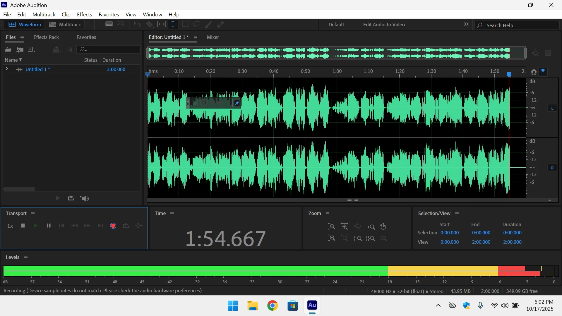 The input signal level from the TASCAM into Audition doesn’t leave me much headroom. The TASCAM deck does not allow for the output level via USB to be adjusted. I reviewed alternate means to adjust the incoming signal level, such as right clicking the speaker icon in the task bar; it does not appear the USB signal is considered to be an audio input source. A friend loaned me a Behringer U-Phoria UMC22. All that did was confuse the computers and/or me. What it didn’t do was allow me to adjust the signal level going into Audition. I am open to suggestions.