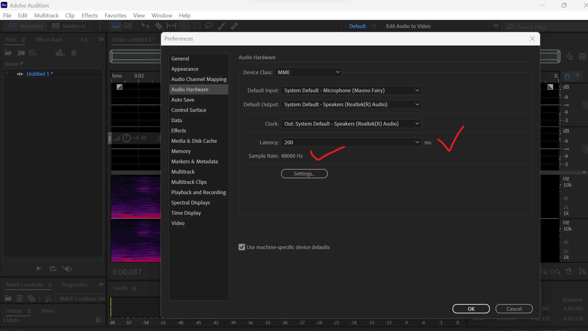 I'm using Adobe Audition 2023 (Build:- 23.2.0.68), and it is fully updated, and using "Maono 903" USB Microphone.