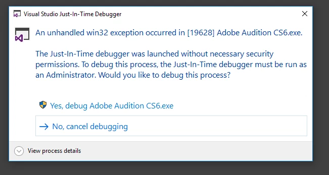 An unhandled win32 exception occurred in [5680] Adobe Audition CS6.exe