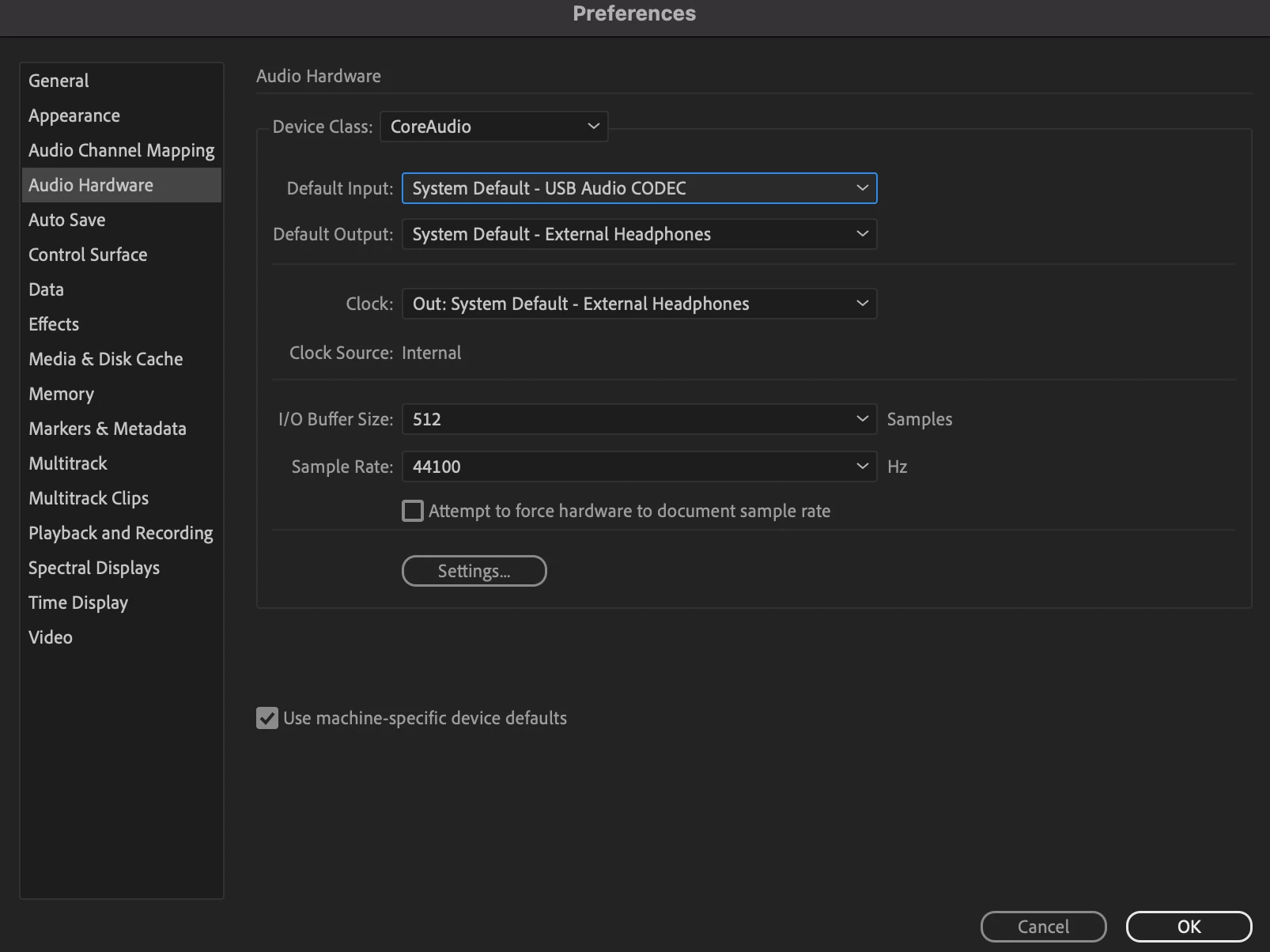 Audition sees the mic in Audio Hardware prefs, but I can't get Audition to actually /hear/ the mic, that is to say, when I try to record it captures only silence, but it gives me no errors. When I switch the input mic to my Mac's built-in mic, it also cannot hear, but again it gives no errors.
