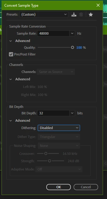 The mixed-down WAV, when opened in Audition sounds perfect… in Audition, however if you test the music on a different player (Media Player, Itunes player, Edge player, Google player, stereo, car stereo, etc) it sounds wildly different (not just slightly different) – with maddeningly variable results.