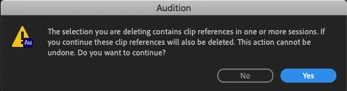 When I duplicate a session and try to remove old, unused clip references, which I’ll never need in the future, it warns me it’ll delete these references in every other session in which they're used, and it cannot be undone. This is ludicrous. I didn't believe it would actually gut a previous session, but lo and behold it did! How does this make sense? I reverted to backup. Disaster averted.