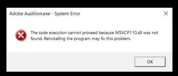 Audition 22.5 won't open after install. Continues to send error message that a .dll file is missing and I need to re-install. I have re-installed, and re-started between three times now.