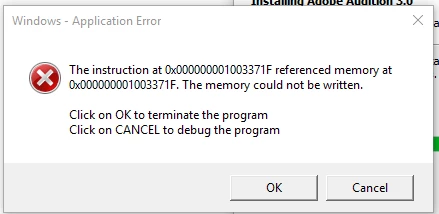 Audition 3.0 fresh installation runtime error on windows 10