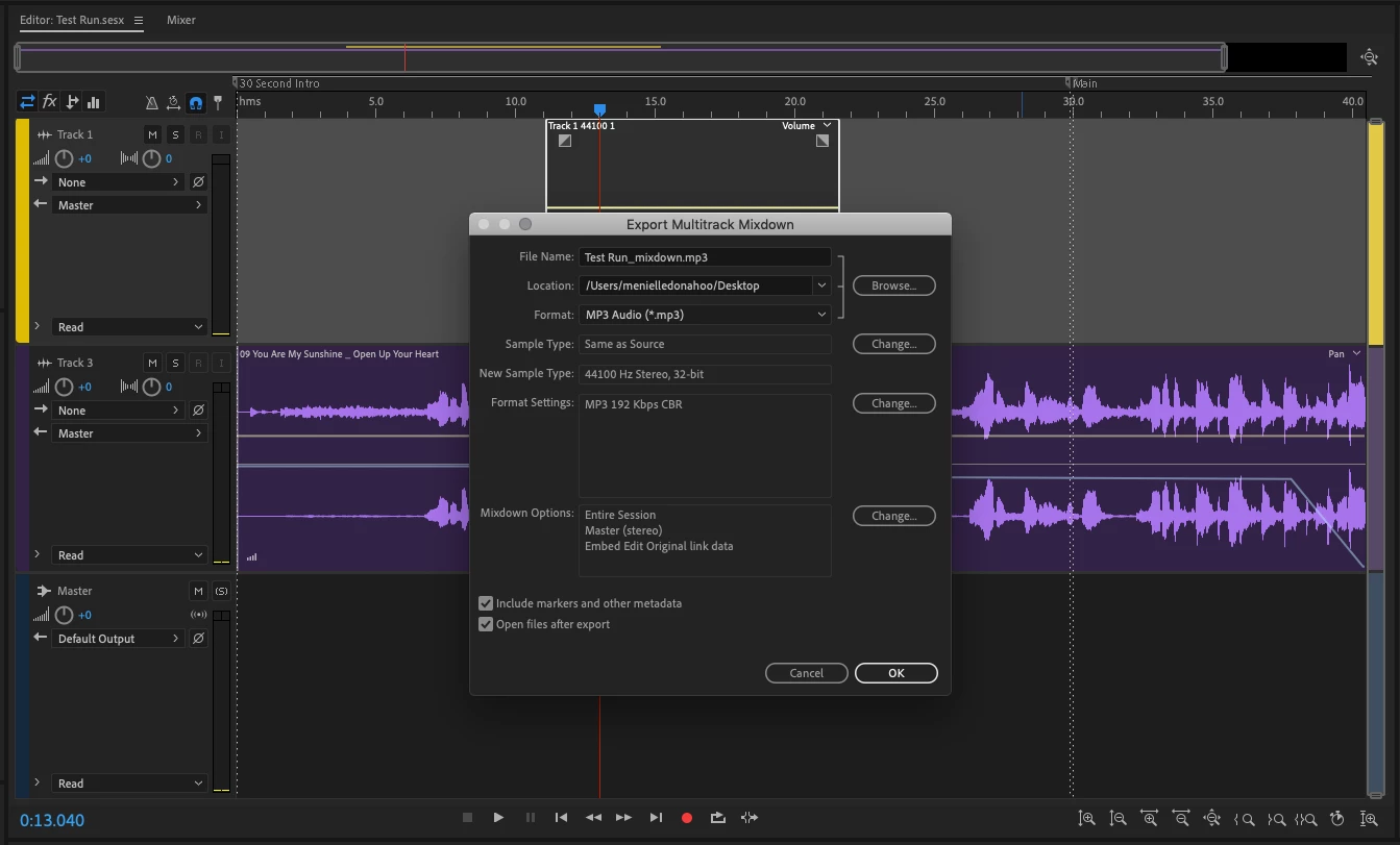 I have some music on one track. I have lowered the volume of the music on that track when the audio begins on another track. It all sounds exactly like I want it to on Audition. However, when I export it to an mp3 file & it plays back on iTunes, the volume isn't adjusted.