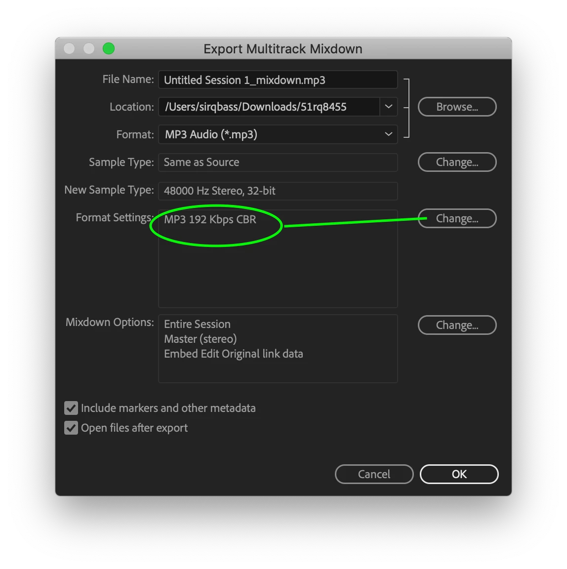 1. how can i set by multritrack export to default 320kbps?