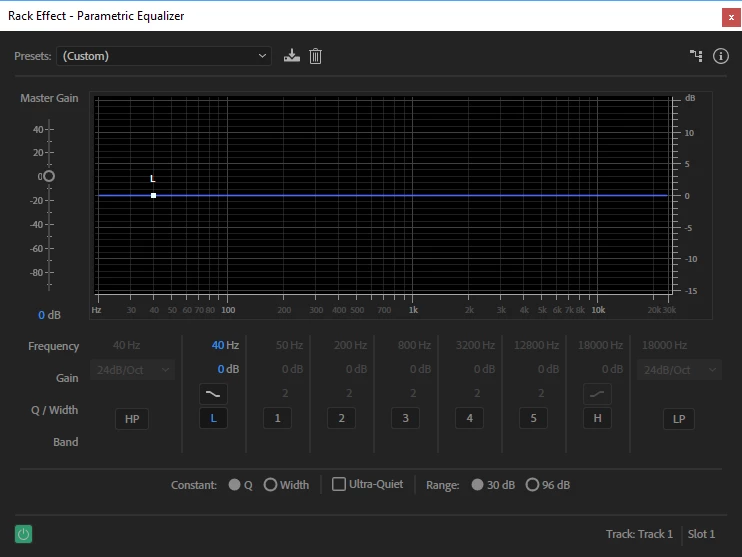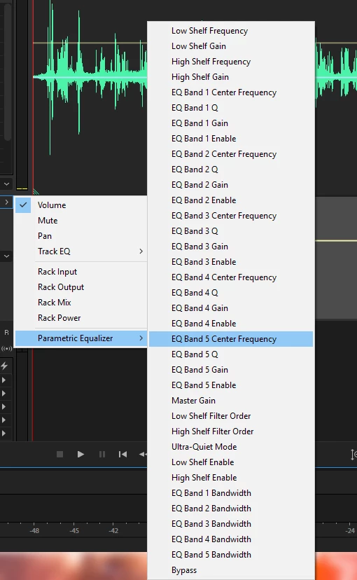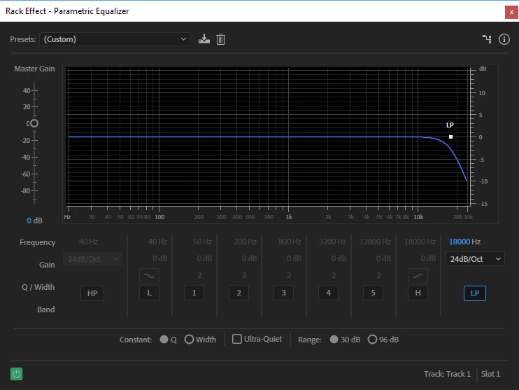 Audition CC - Parametric equalizer low pass frequency envelope
