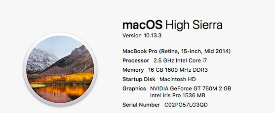 On a mid-2014 MacBook Pro running High Sierra 10.13.3