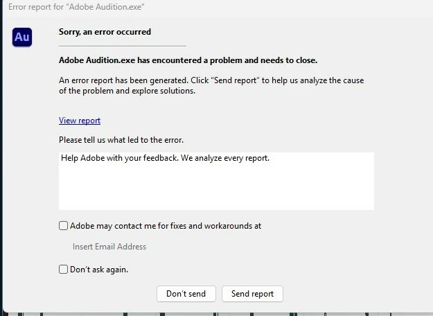Audition crashes trying to open Cedar DNS One. All other VST 3 plugins are fine, and Cedar works fine in Audacity. My Audition is 2023, so should be compatible with DNS