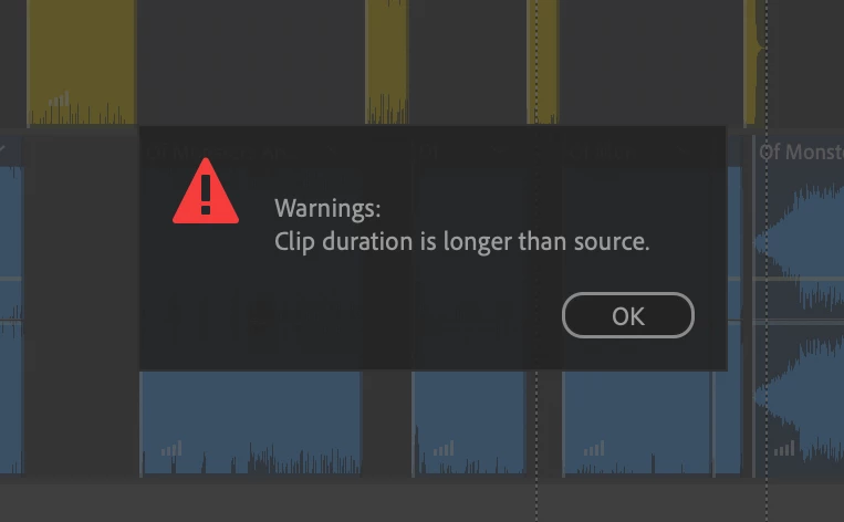 As the computer is creating the OMF file this Warning comes up, and the process stops: Warning: Clip duration is longer then source!