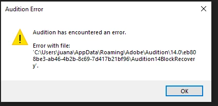 Audition has encounter an error Audition14BlockRecovery