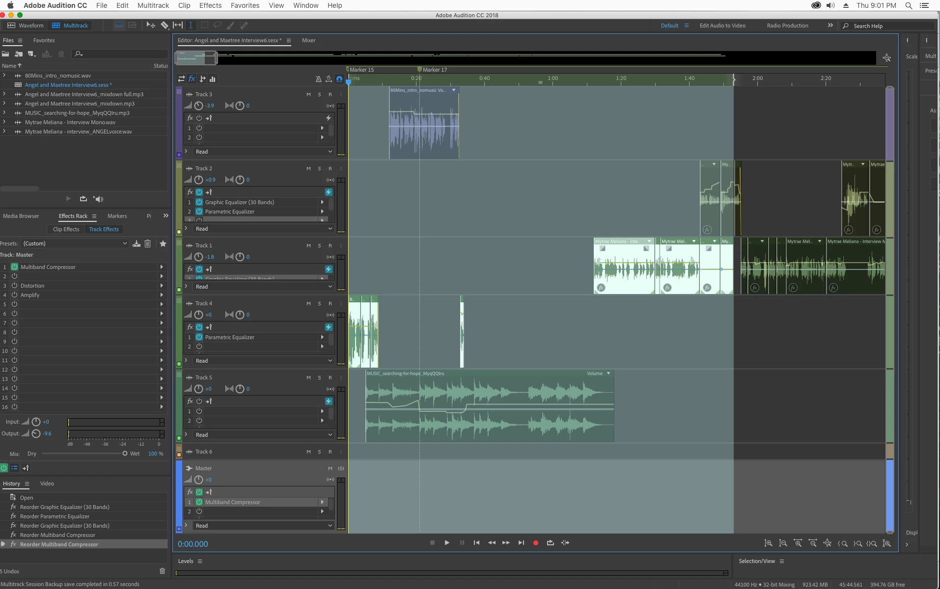 I am having trouble getting accurate audio exports from audition. Export>Multitrack Mixdown>Entire Session. Edited audio doesn't render correctly in the bounced file. This is not an effects problem. I have uploaded a short clip file that is correct and then another file that is a bit longer which shows the problem. The place at issue is renderred correctly at 00:33 seconds on the "correct" version. And incorectly at 1:43 on the "problem" version. Tracks are rendered pre bounce. The edited audio that is giving the problem is on Track 2 in the screenshot. Any assistance would be very much appreciated.