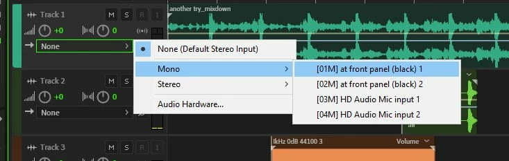 I'm just getting set up on Audition and I'm routing my mic (some kinda cheap Samson I'm borrowing) and my guitar amp through a little Behringer XENYX302USB mixer to Audition. It records & plays back fine in waveform, but when I try to record in multitrack nothing happens.