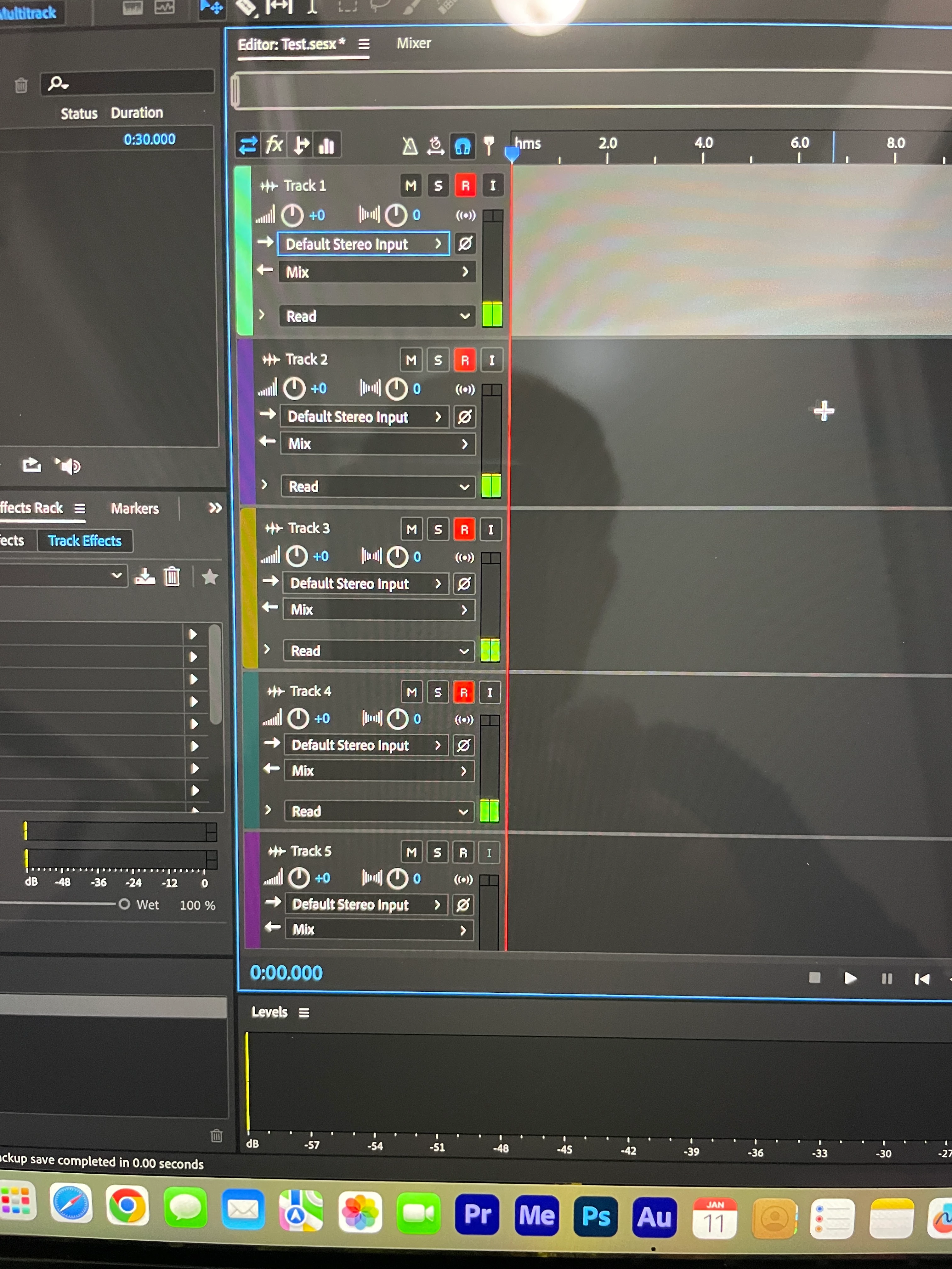 When opened the mics read just fine under Default Stereo Input. However, I select Mono and tell Audition which channel input to record on each track individually and for some reason, every track does not want to read.