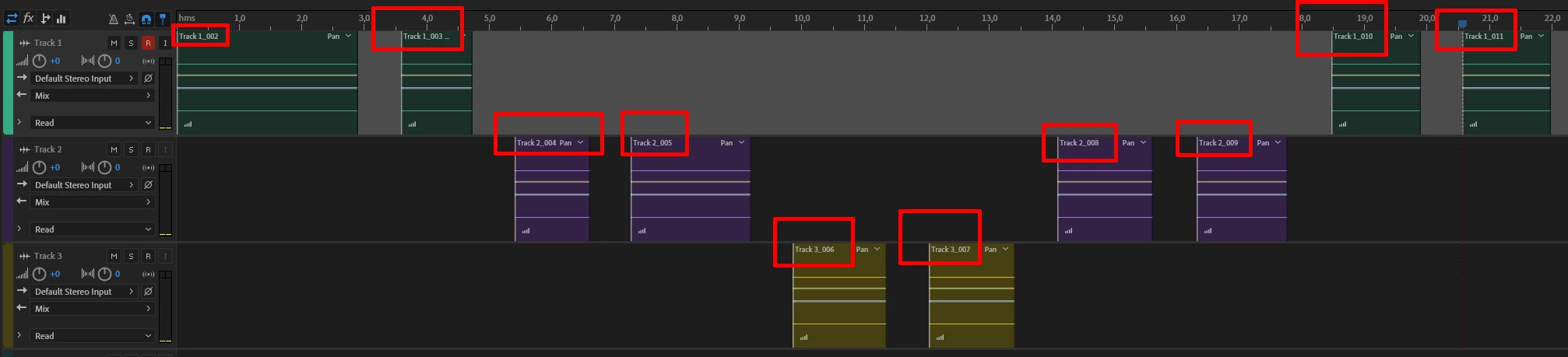how to tell audition to continue down the day after, track 1_004, track 1_005, track 1_006, just like in first session/day?