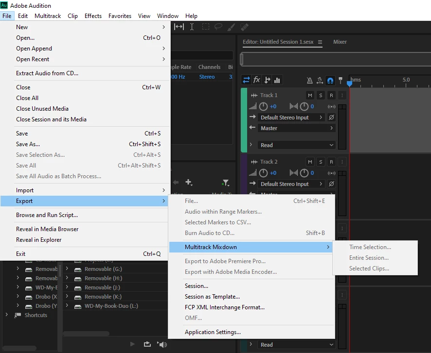 I don't know what I am doing wrong with Audition but I cannot save my mixed session as a file of anything other than .sesx