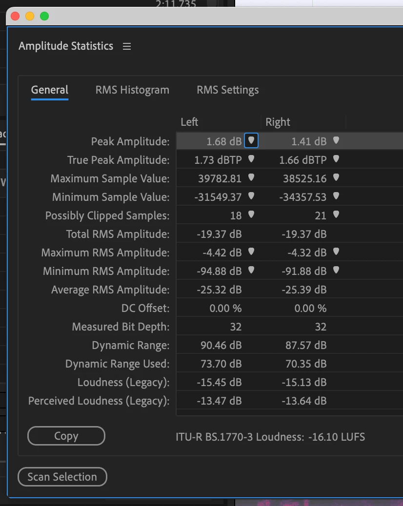 My sound engineer client, who created the file in ProTools, says that there's a hard limit at -4 dB and it's not possible for there to be clipping. Is there a setting for the Audition meters that I'm not seeing? Are files getting imported with a volume boost somehow? I've pushed back on this twice already and I want to make sure all my bases are covered before I hit send a third time.