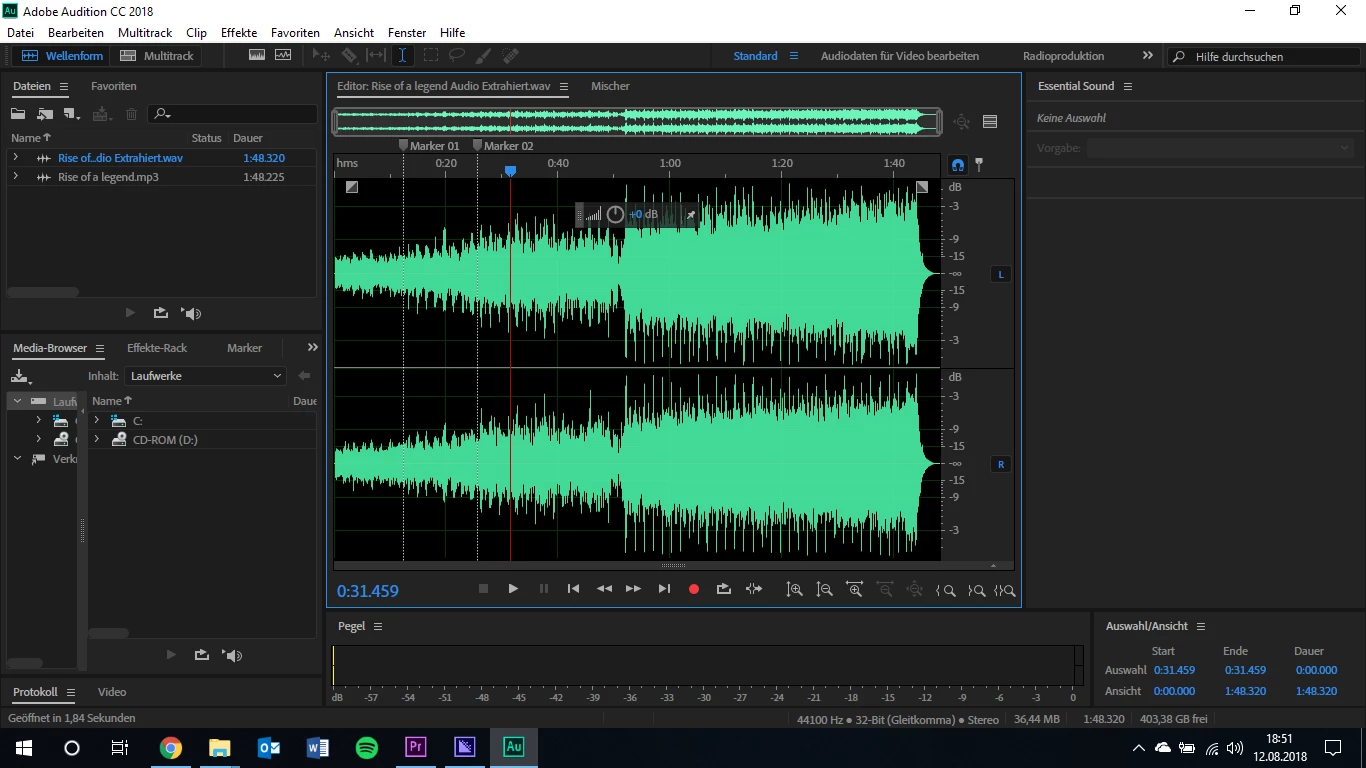 ich habe bei Audition das Problem, dass die Werkzeugleiste mit Rasierklinge, Unterschieben etc. pp ausgegraut ist und ich keines der Werkzeuge anwählen kann, mit Ausnahme des Zeitauswahlwerkzeugs. So kann ich allerdings nicht wirklich arbeiten, da ich den Track an einigen Stellen kürzen muss.