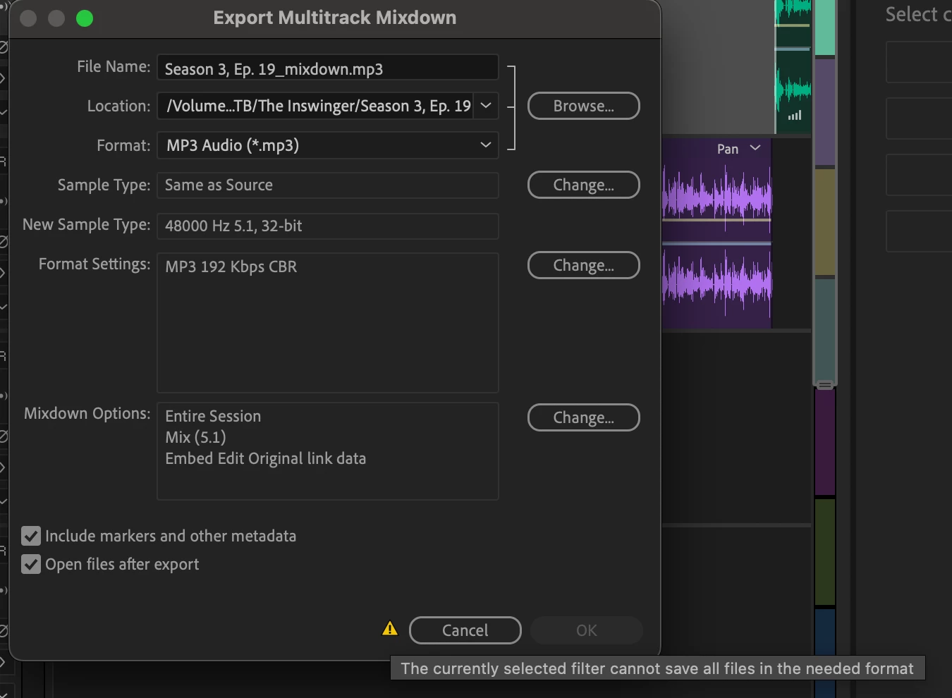 I just got a new MacBook Pro and Audition won't let me export my podcast as an MP3. I've done it plenty of times before on my old MacBook Air so I'm not quite sure what the problem is. Anyone know if there is a setting I need to change so my file can be saved as an MP3?