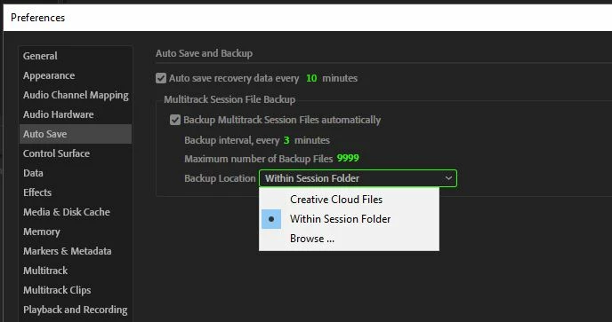 I've encountered a fatal error in my program: it immediately crashes upon opening one particular session: It was functioning properly, but I went to add additional vocals and edits to it, and I drag copied one particular clip, and it initially gave me the fatal error and needs to shut down message; after reopening it, it pauses for a few seconds, and same thing - encountered a fatal error and needs to shut down; I have most, if not all of the tracks pre-rendered, and it seems as though it's causing some real bad latency issue, which is subsequently causing the error. I have the Auto Save every 10 mins box checked in the preferences, but can't locate a folder for it anywhere in the system (macOS Mavericks - Audition CS6), previous research enlightened me that the Auto Save feature got updated/expanded with version CC2015, but was hoping for some sort of file retrieval option for my particular version if anyone know of any... alternatively, is there a way to open a session with the pre-render tracks option turned off? Or is there any other way to salvage this session otherwise? It's a real important song needed for a variety of purposes, thanks