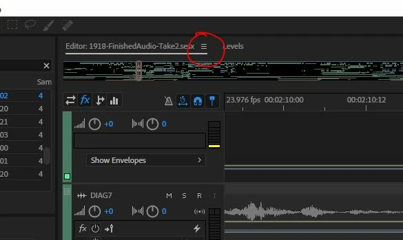 Am I losing it, or is this button with three horizontal bars supposed to be a dropdown that lets me switch between either open sessions (in Multitrack mode) or open waveforms (Waveform editor mode).