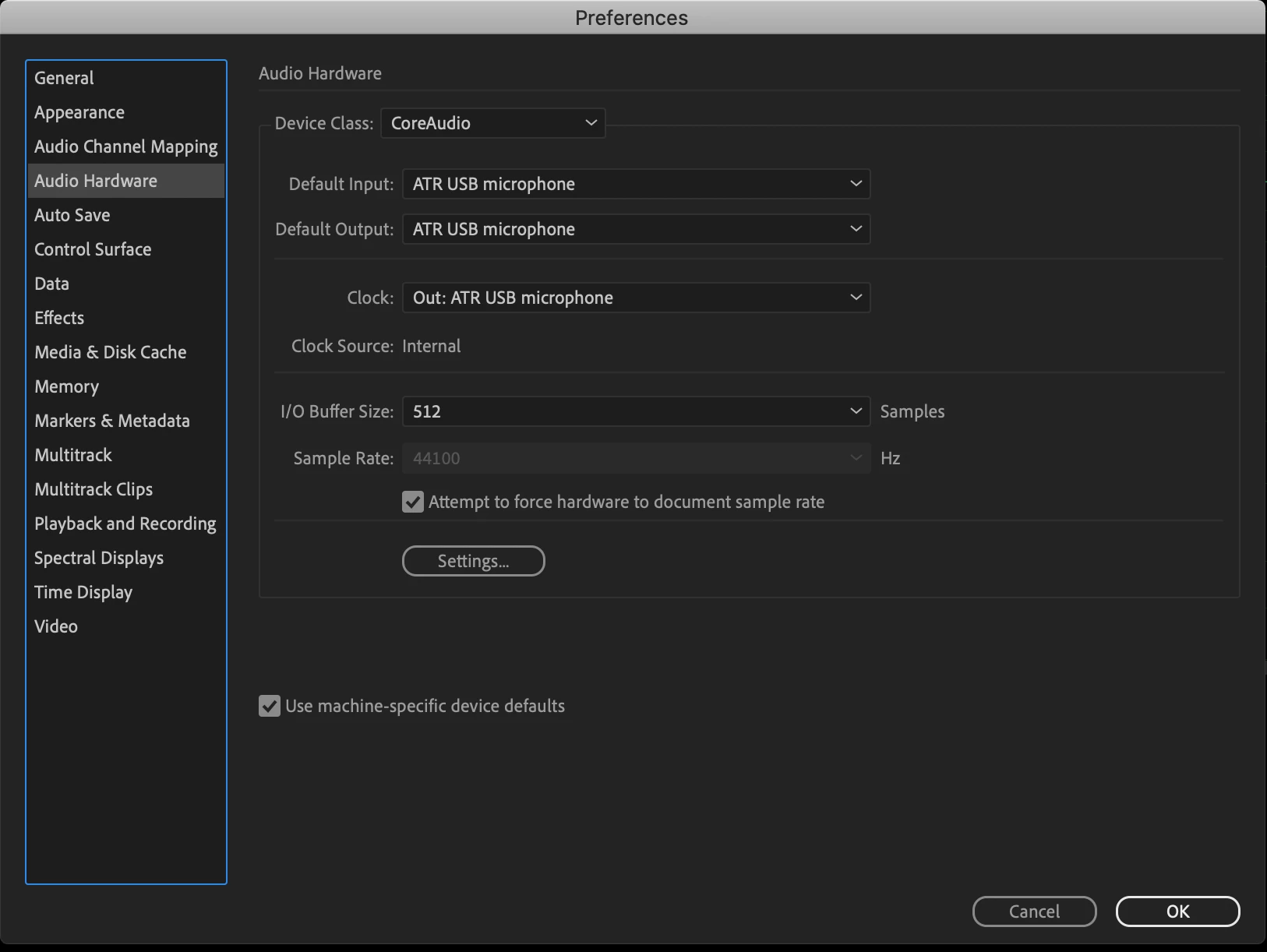 All the Audio Hardware settings appear correct...
