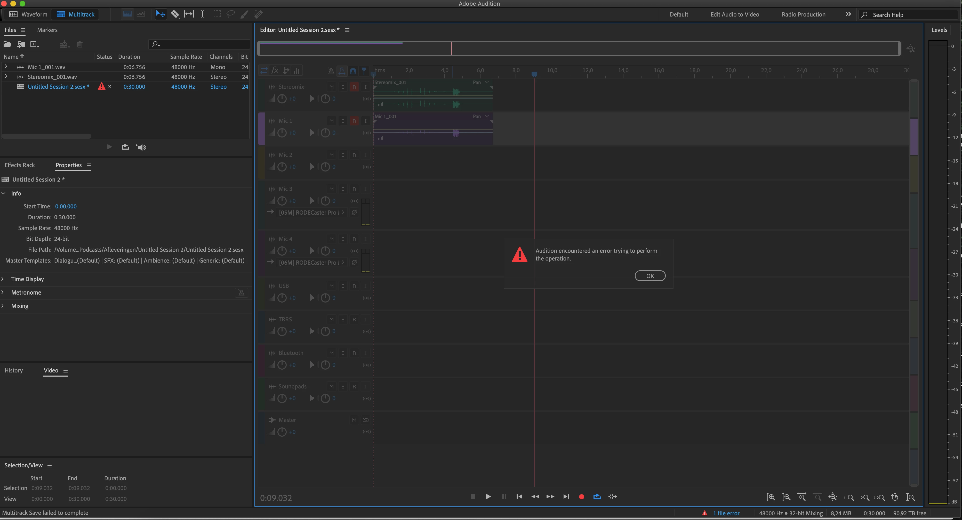 Can't save multitrack session in Audition 2020