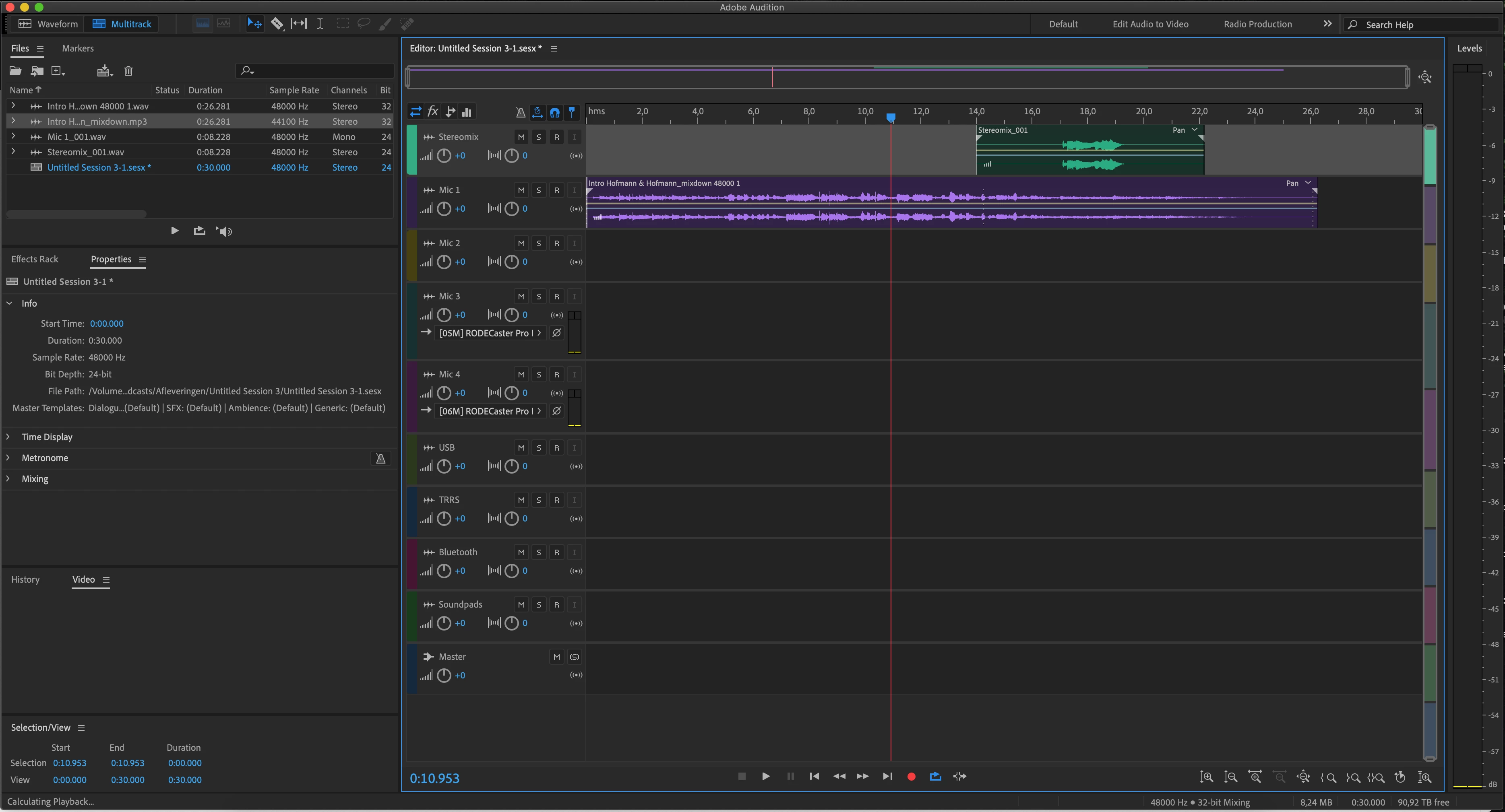 I've tried both the standard template that I use (for a Rodecaster Pro) and creating a session without a template.