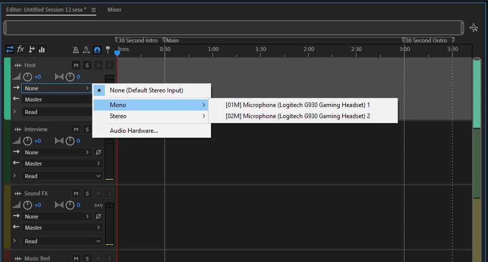But when I try to chose the different inputs/outputs I can still only chose the defaults as in the second picture? This doesn't make any sense to me at all, if the program finds the different hardware, why is it not presenting me with the correct options?