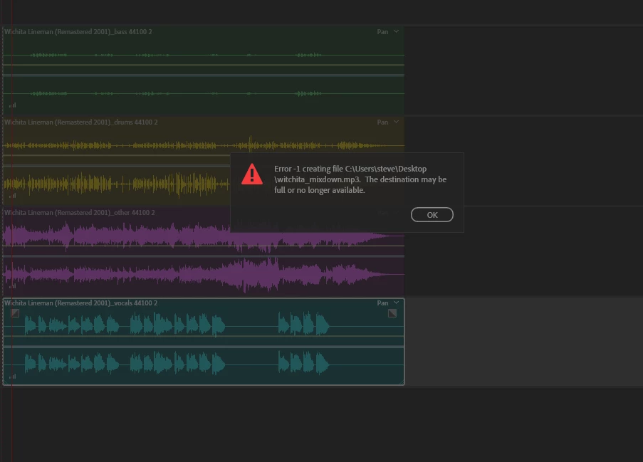 Cant Export Multitrack